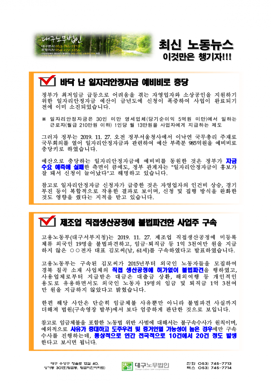 대구노무법인이 선정한 2019년 11월의 노동뉴스